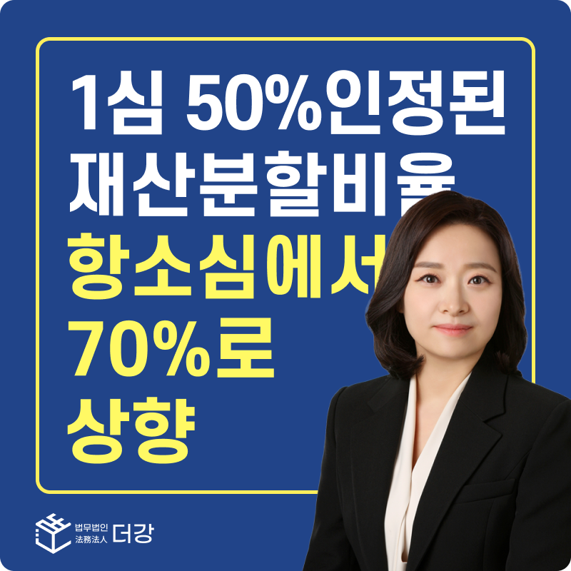 [이혼] 1심 50%인정된 재산분할비율, 항소심에서 70% 로 상향되어 승소