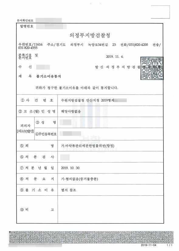 [형사] 치료목적으로 필로폰 구매하여 경찰조사 받은 피의자, 무혐의 처분