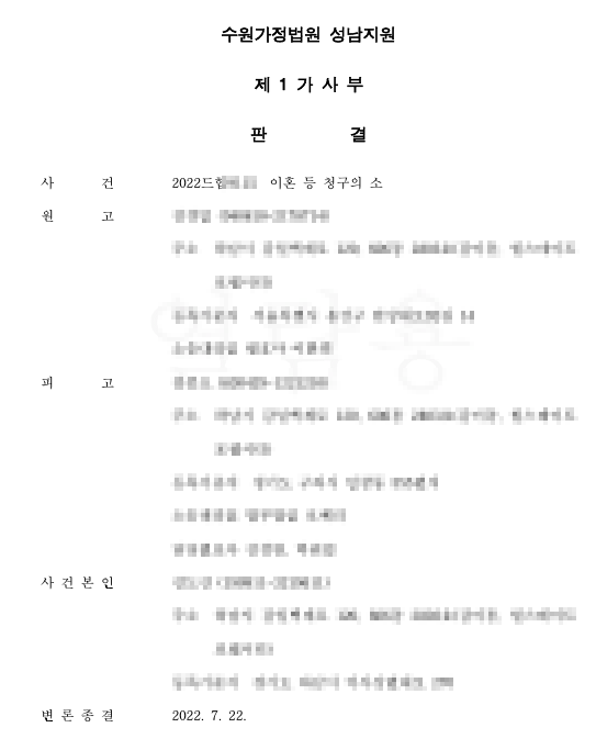 특히, 피고가 이혼 소송 전에 아파트 청약에 당첨되었는데, 그 아파트 가액이 1심에서 이루어진 감정평가 금액보다 2심에서는 훨씬 더 떨어진 상황이었고, 이혼소송 중에 아파트 중도금, 잔금 등을 본인 돈과 부모님한테 돈을 빌려서 혼자 납부하셨는데, 이런 부분들도 전혀 판결에서 고려되지 않은 것이었습니다.