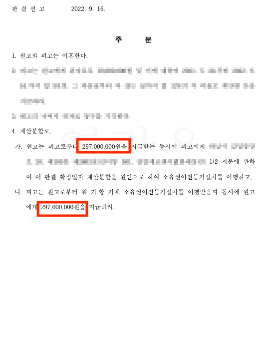 [이혼] 이혼재산분할금 2심에서 1억 2,800만원 감액 판결